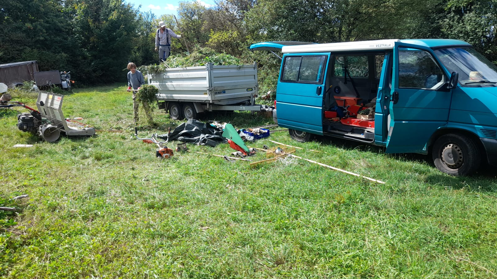 Der Arbeitskreis Biotoppflege führt in erster Linie Mäharbeiten durch. Mit Hand- oder Motorsensen werden Brombeeren, Disteln und Brennnesseln gemäht, um zu verhindern, dass diese Arten sich zu stark ausbreiten und die anderen Arten verdrängen. Durch das Offenhalten von Teilflächen entsteht ein Mosaik aus freien Flächen und Büschen, das vielen Tieren optimale Lebensbedingungen bietet. Auch lichtbedürftige Pflanzenarten werden dadurch gefördert.
