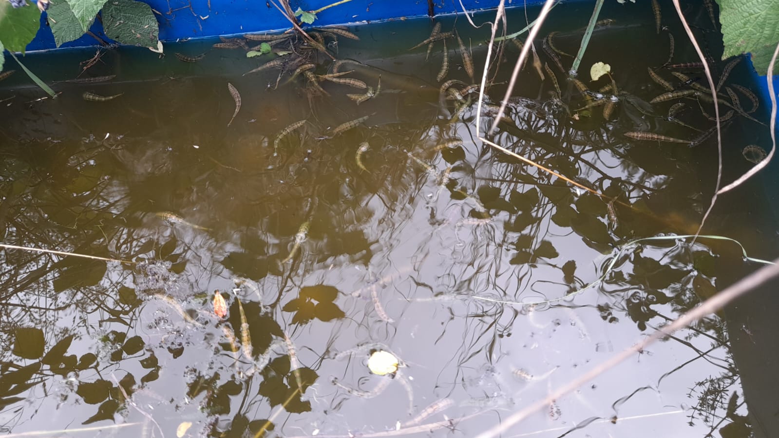 Auch diese Lebensräume in und um Heidelberg herum pflegen und schützen wir. Hier werden Algen aus dem Putenbassin im Schwetzinger Schlosspark entfernt und danach Amphibien, Kaulquappen und Juvenile vorsichtig wieder zurückgesetzt.
