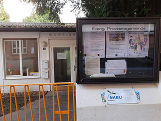 Eingang zum Gemeindezentrum, rechts ist das Büro vom NABU
