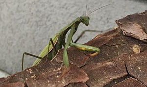 Die Mantis auf dem Foto ist wahrscheinlich inzwischen gestorben. Ihr Lebenszyklus endet im Oktober/Anfang November und beginnt dann wieder neu im Mai. Möglicherweise befindet sich eins ihrer typischen Schaumgelege im Holzstapel!