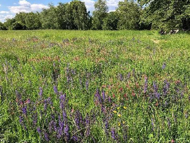 Die Pflanzen säen sich selbst wieder aus und überstehen auch extreme Wetterlagen. Zum Artenspektrum der Grünfläche gehören auch einige Waldarten, Bäume, Streuobst und Gehölze.