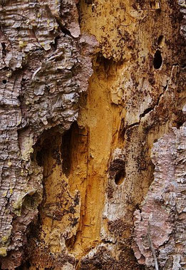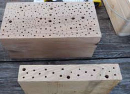 Außerdem können die benötigten Hohlräume geschaffen werden, indem wir mit dem Bohrer in Holzblöcken Niströhren künstlich schaffen. Geeignet ist nur abgelagertes, entrindetes Hartholz (z.B. Esche, Buche, Hainbuche, Eiche), das keinesfalls mit Holzschutzmitteln behandelt sein darf. Nadelholz darf nicht verwendet werden. Es ist zu weich, so dass sich die Fasern nach dem Bohren und bei Feuchtigkeit wieder aufrichten. Außerdem können die Gänge verharzen. Die Folge wären verletzte Flügel.